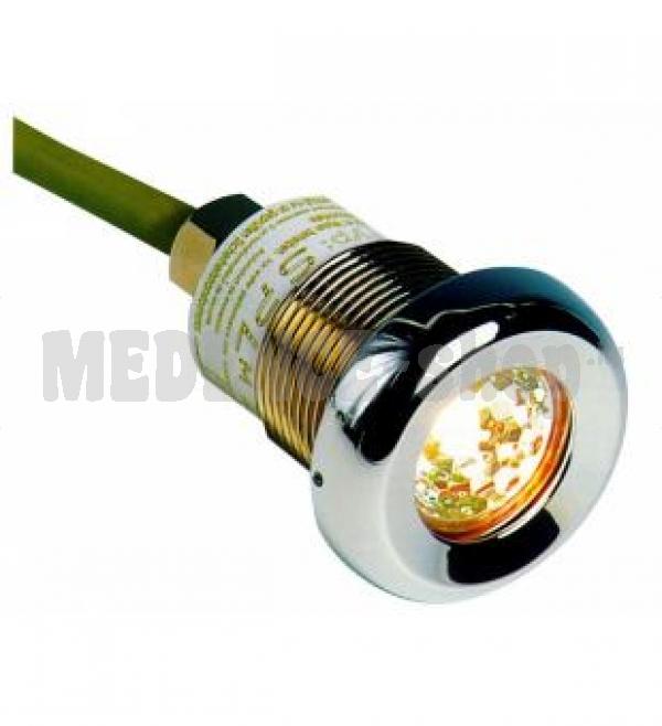 Víz alatti világítótest,12 V / 20 W - os halogénlámpával, 2 m-es speciális vezetékkel és szabadalmi oltalom alatt álló UNI-DI tömítőelemmel könnyen beszerelhető.